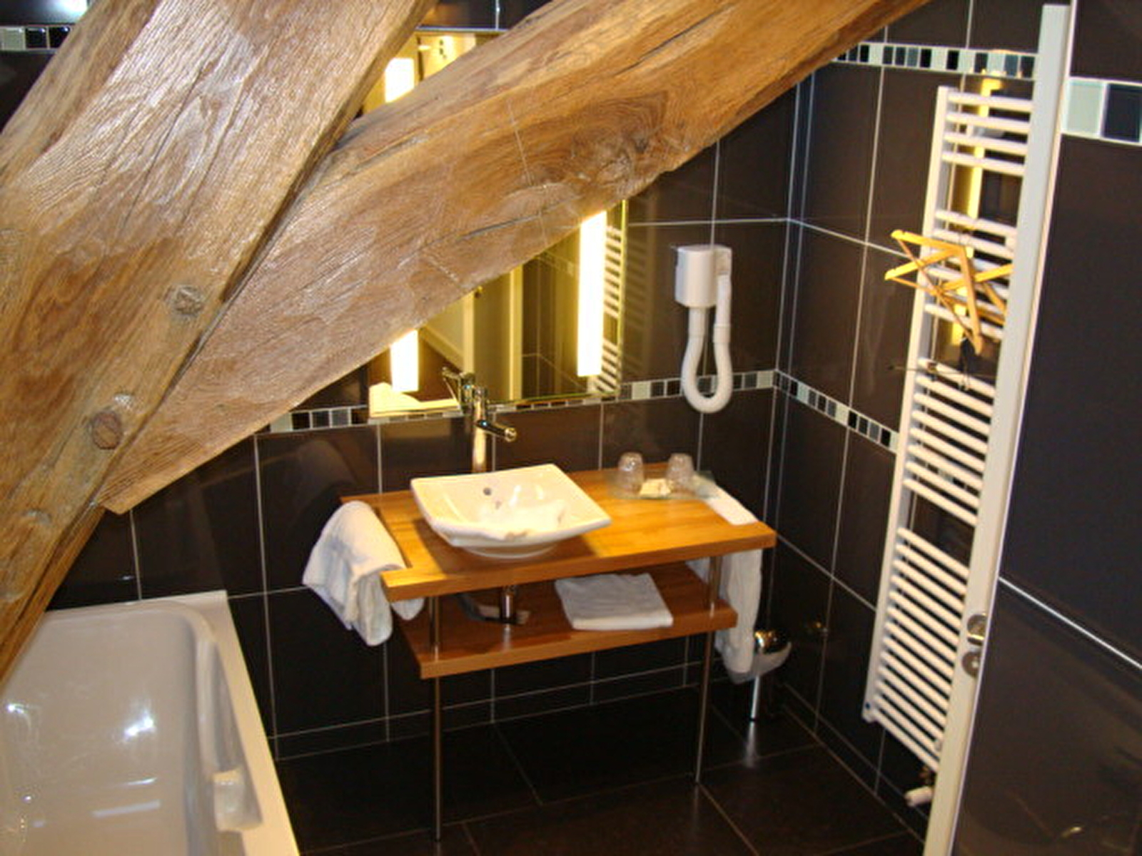 La totalité de l'hôtel et des parties communes a été rénovée entièrement : isolation, sécurité, accessibilité ont été étudiées et le neuf s'est mêlé à l'ancien en respectant le lieu dans une ville du XIIème.